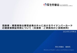 2024年11月11日 / 最終更新日 : 2024年11月11日 daycare-admin 高齢者・障害者等の要配慮者の方々におけるマイナンバーカードの健康保険証利用について(支援者・ご家族向けご説明